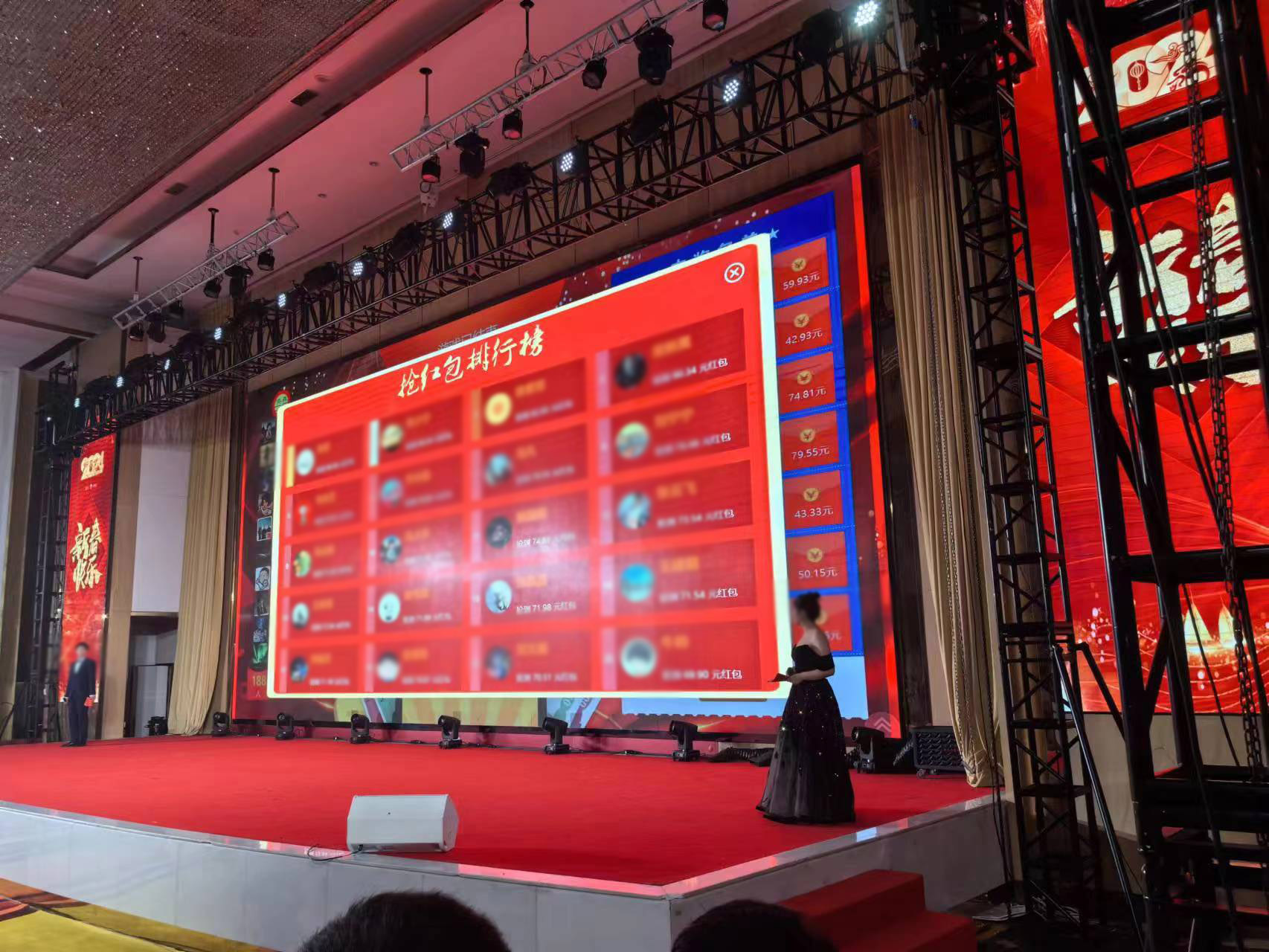 云互动系统为澳森特钢集团年会提供马赛克签到、名单抽奖、红包雨等现场互动技术支持服务。