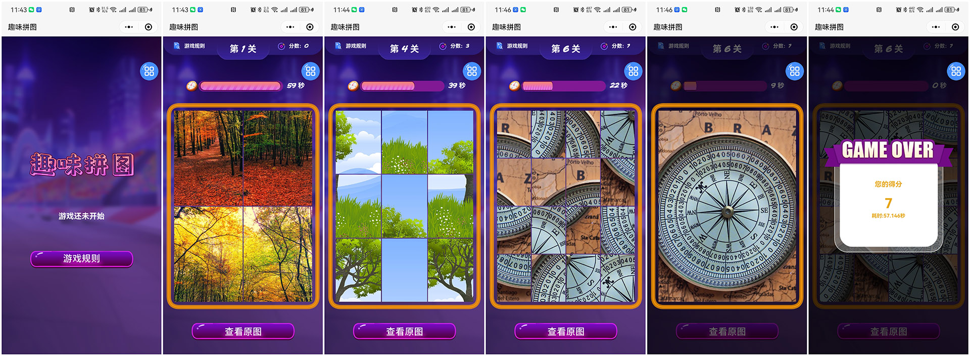 趣味拼图的关卡图片支持设置4宫格、9宫格、16宫格,难度排行为:4宫格 < 9宫格 < 16宫格,可以添加关卡后自行测试一下难易程度。
