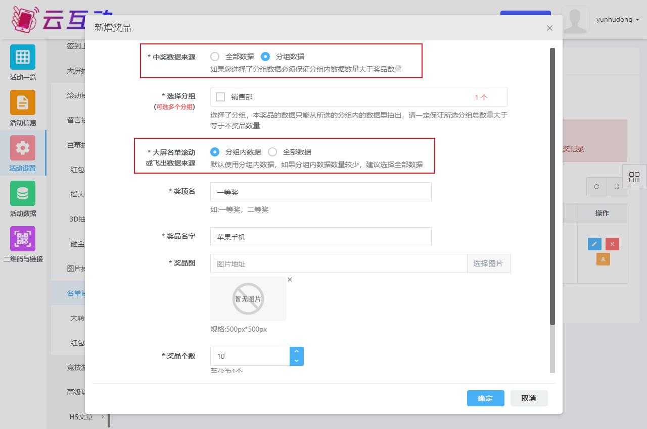 云互动系统中的名单抽奖具有多种个性化设置,可以满足不同场景的抽奖需求。