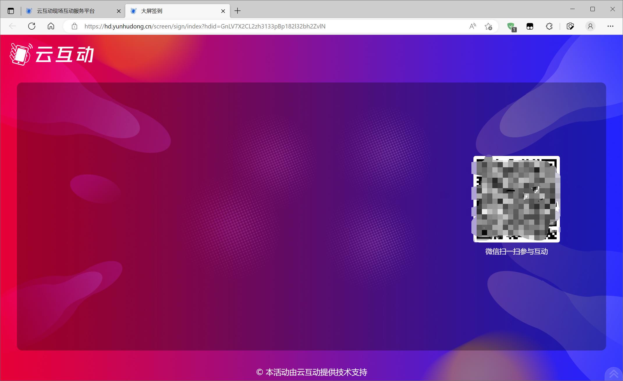 4、完成地理位置限定后,即可在大屏幕签到页面扫码进行签到。