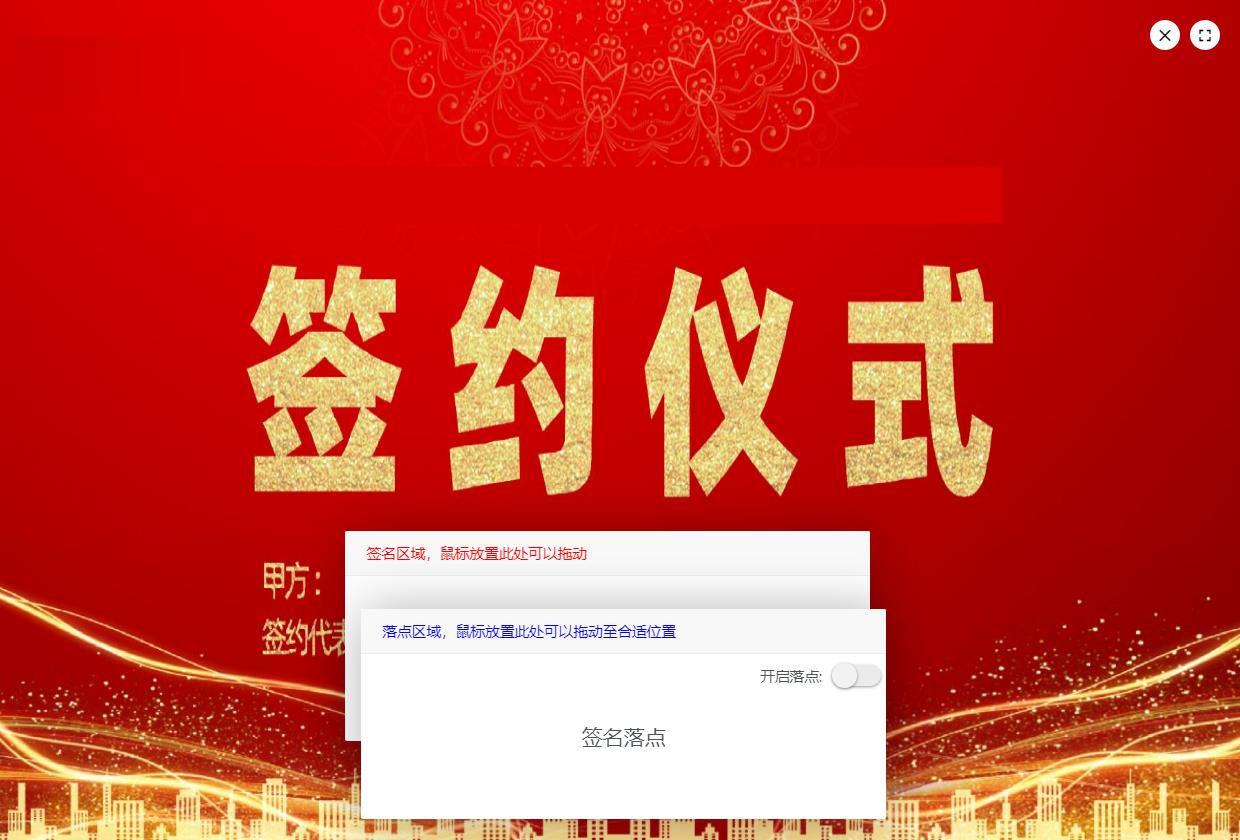 7、完成设置后,可以将轮次中复制的链接,在大屏幕上访问即可查看电子签约的效果预览,并可以在客户端中签字进行测试,测试没问题后可以重置轮次并发布正式活动用来正式使用。