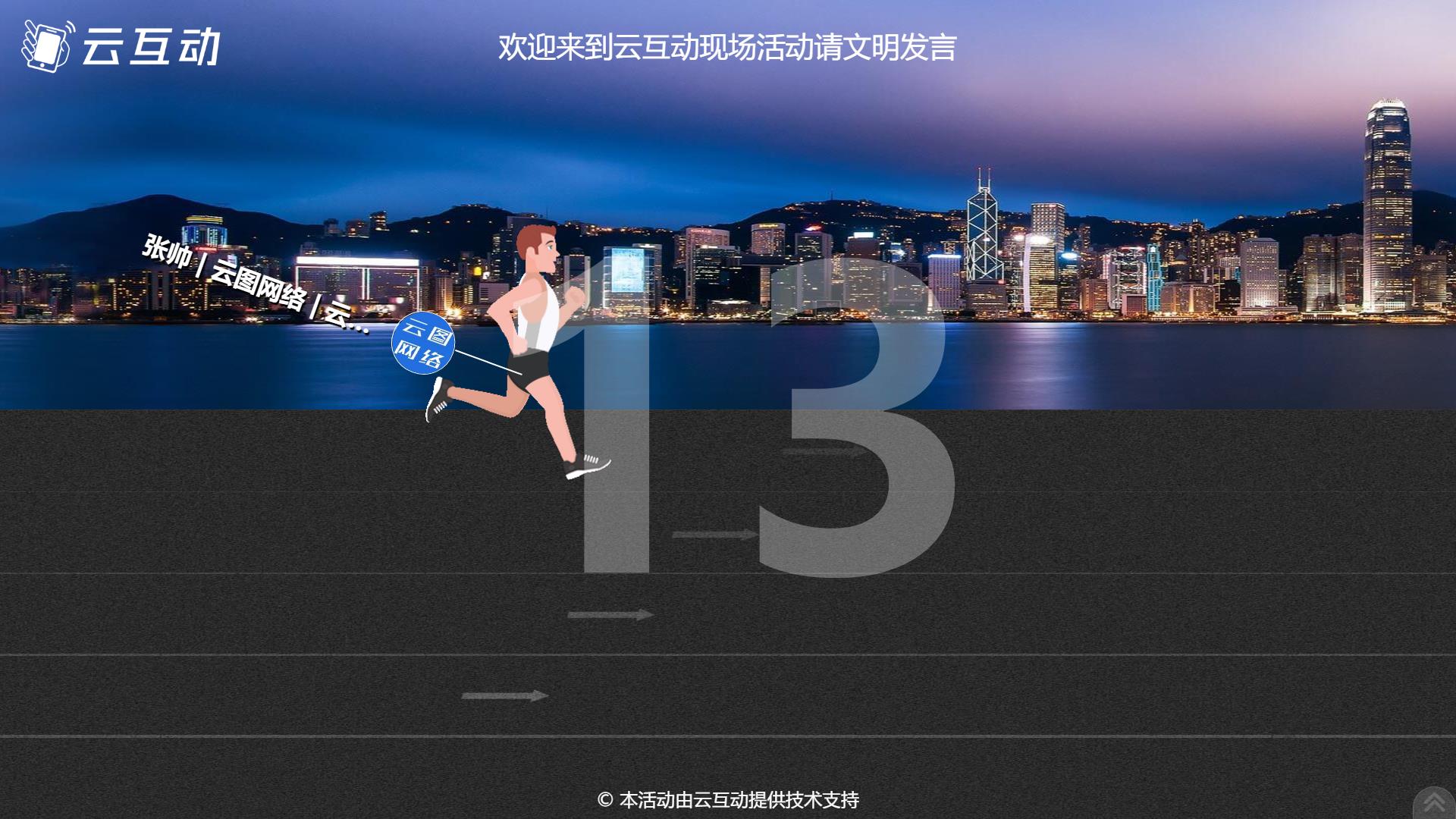 摇一摇拼手速的马拉松跑步现场互动游戏是在各类现场活动中可以进行中场互动的游戏方式之一,我们设置好后台轮次后,使用浏览器访问游戏页面并投屏到大屏幕上,现场参会用户使用微信扫一扫功能扫描大屏幕上的二维码即可参与,等待游戏开始后用力摇动手机大屏幕上的卡通人物形象就开始跑步,手机摇动的越快对应的角色就跑动的越快,在游戏过程中比拼的就是摇一摇手速,活动结束后会显示摇动次数的排行榜。