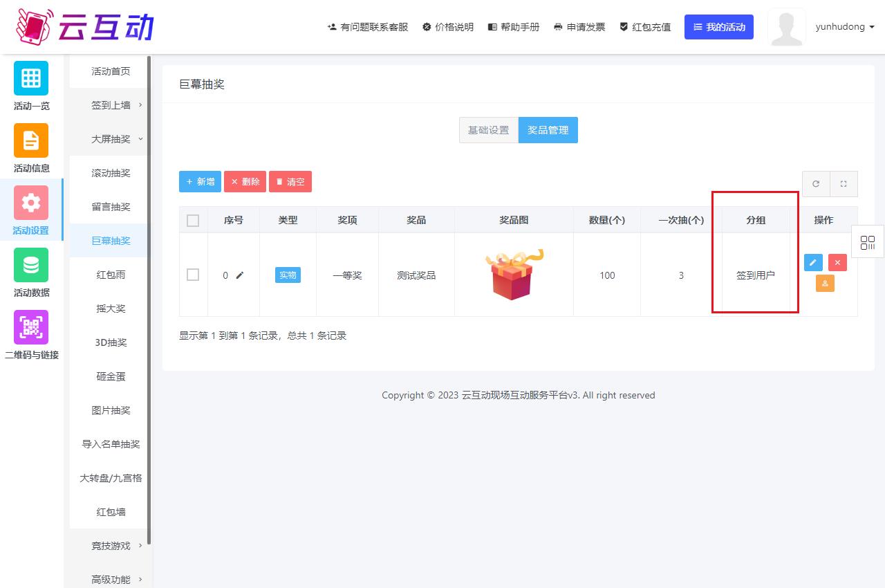 2、该奖项已经抽取出中奖用户剩余参与人数不足,云互动系统的抽奖功能默认不能重复中奖,因此当用户已经中奖后,虽然参与人数与抽奖人数是一样的或者大于抽奖人数,但是依然有可能会提示“抽奖人数不足”,是因为参与人数中已有部分用户已经中奖了,剩余的用户数量不足以抽取当前奖品数量。