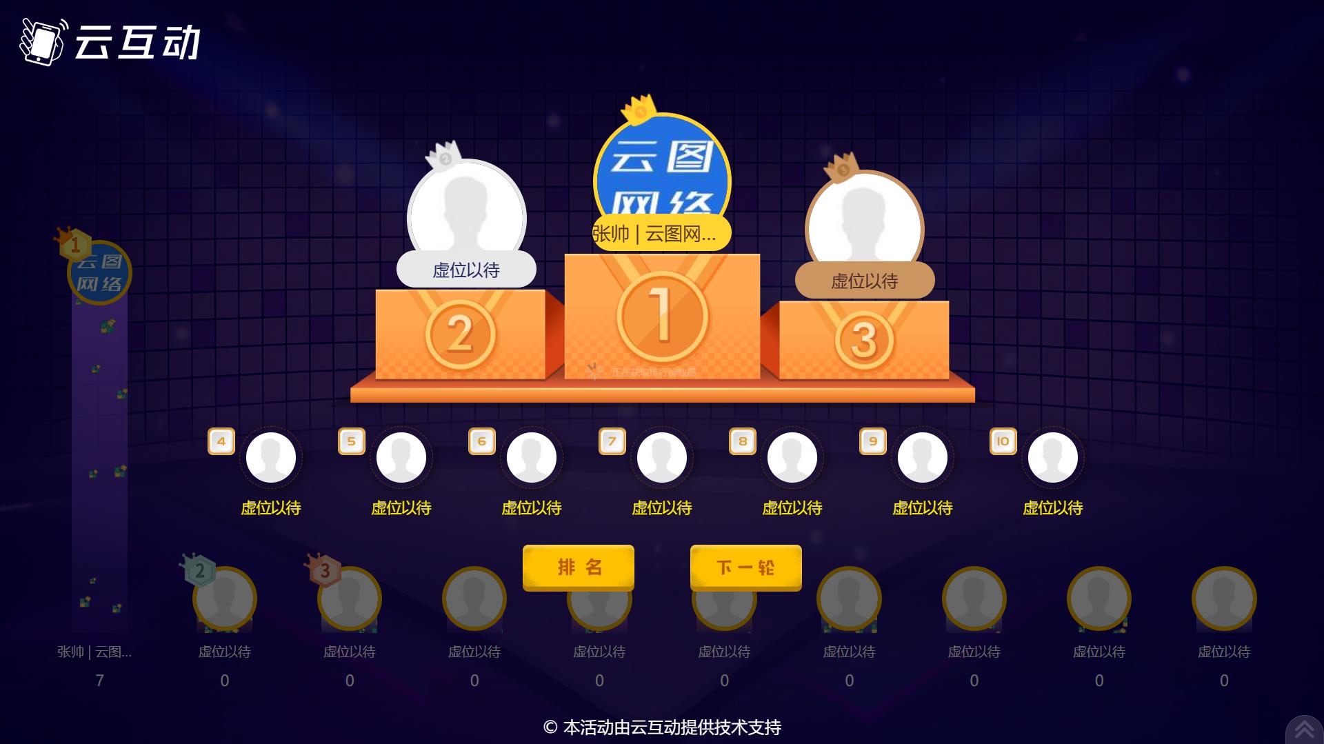 云互动系统将拼图游戏移植到了现场大屏互动系统中,不仅可以和全场用户一起进行拼图PK,还可以组队参与团队PK。