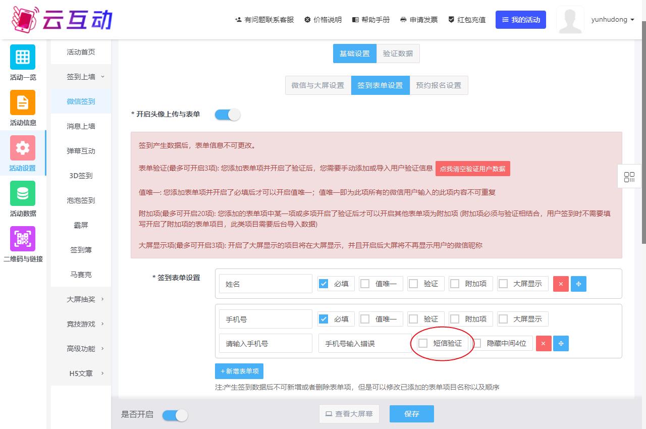 1)需要先在签到表单设置中勾选需要验证的信息,一般为姓名、手机号、工号(为防止有重名的情况,建议勾选2项)