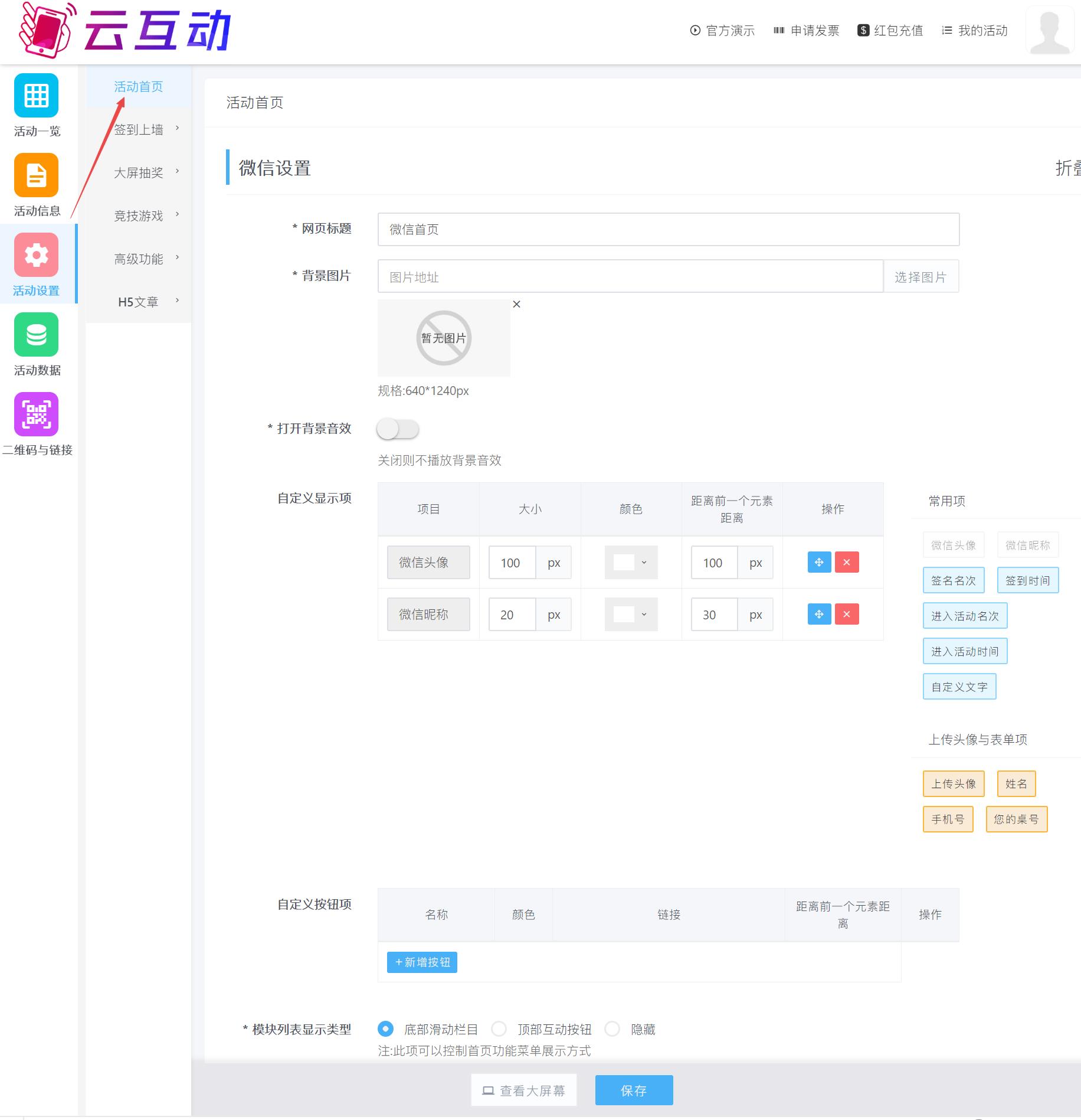该选项可以设置活动首页大屏端的设置选项,您可以根据实际需求进行设置。