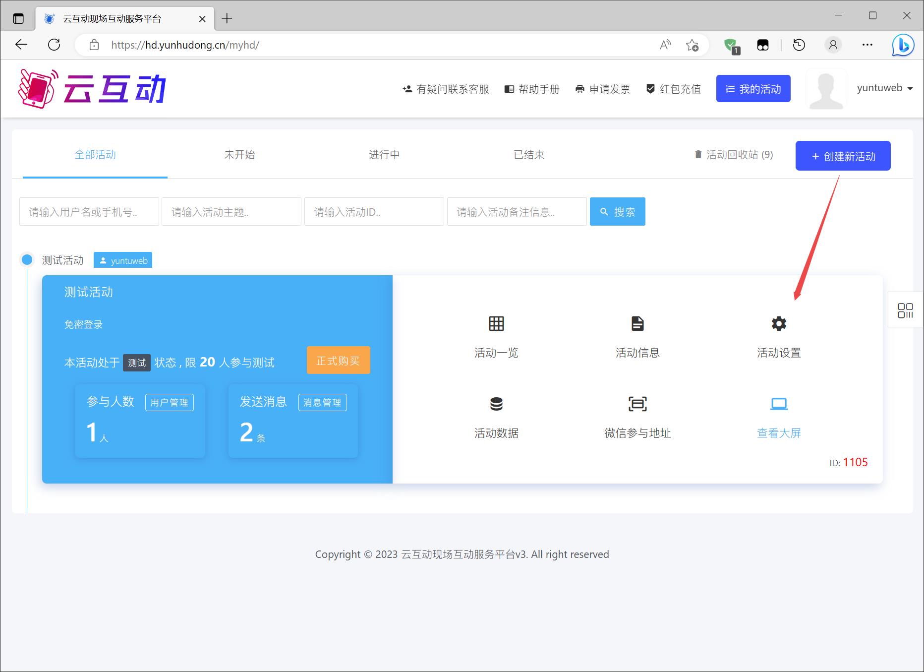 1、首先还是在云互动系统注册一个账号创建新活动,然后进入活动设置。